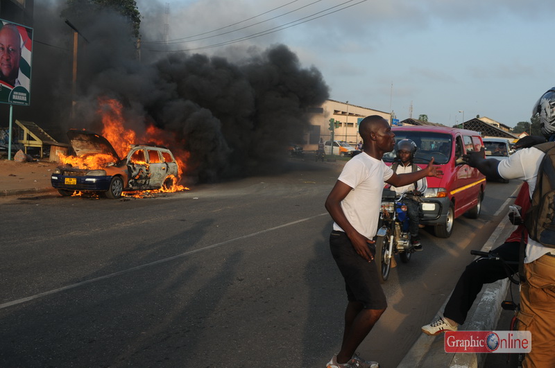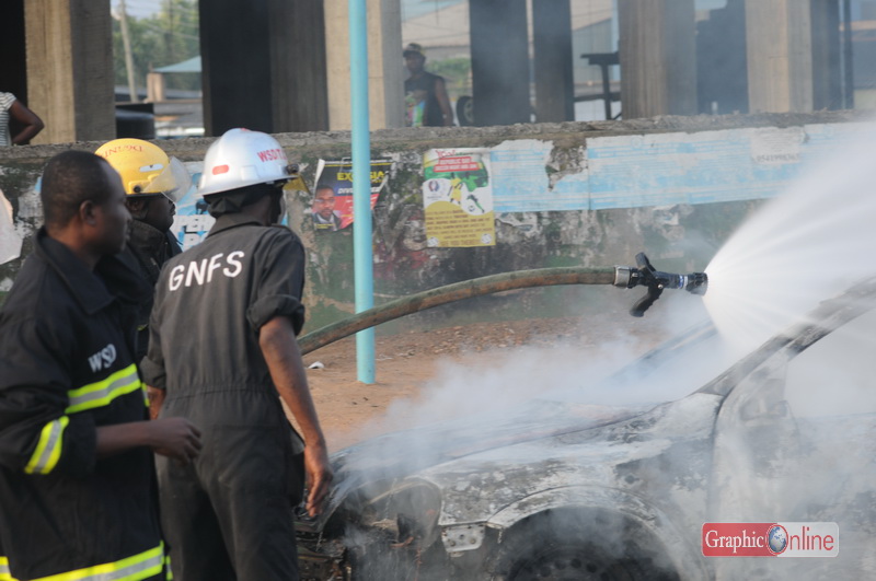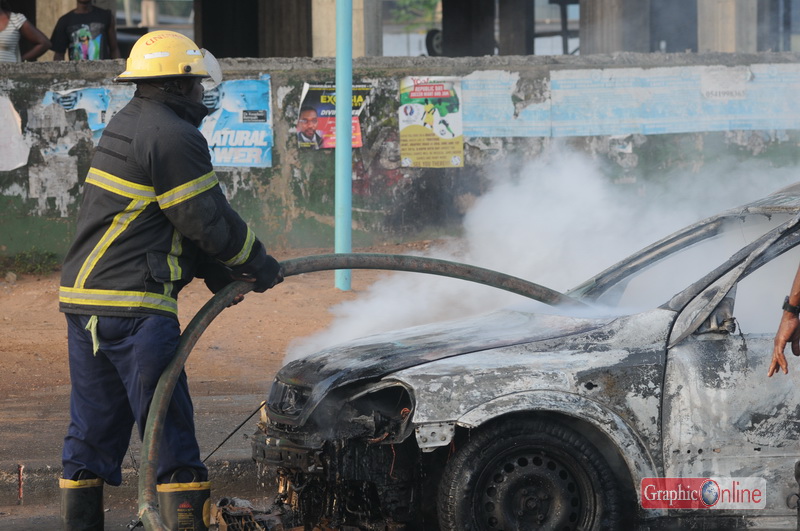 Fire guts car at Graphic traffic light in Accra (photo)