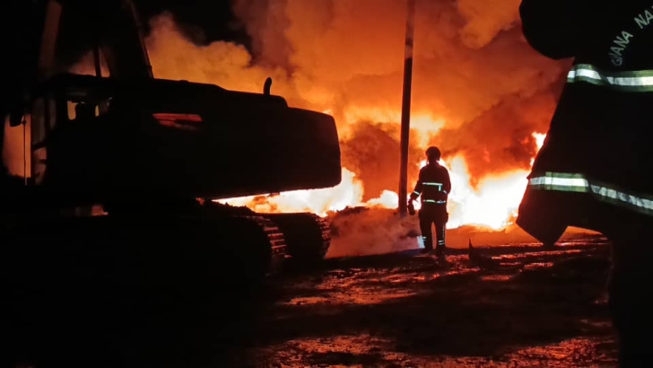 The Ghana National Fire Service (GNFS) fought a fierce battle for 11 hours to bring a massive fire at Yota Energy Company Ltd in Shai Hills under control.
