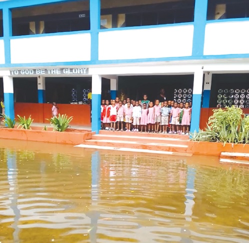 Some pupils left stranded after the compound of their school at Agbozume was flooded