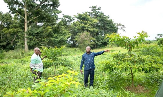 John Allotey (right), CEO of the Forestry Commission, inspecting some trees that were planted as part of the Green Ghana Agenda. With him is Joseph Osiakwan, the Technical Director in charge of Forestry at the Ministry of Lands and Natural Resources
