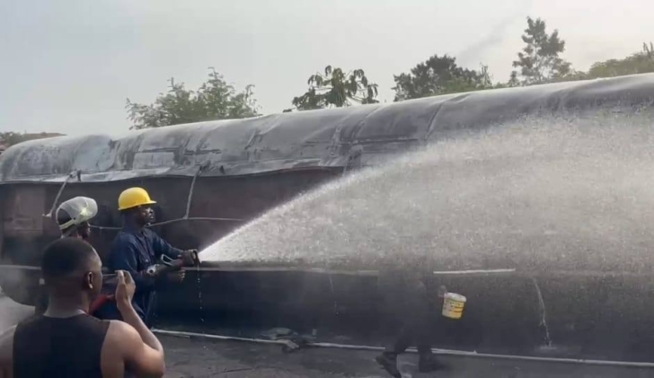 In a police update, it was explained that the fuel tanker loaded with petrol from Tema to Kumasi was involved in an accident on reaching a section of the road at Ntoaso on Accra-Suhum dual carriage.