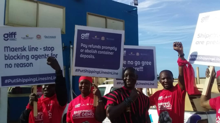 Freight Forwarders' in Tema on Tuesday embarked on a protest against what they termed exploitative practices by shipping lines in Ghana.