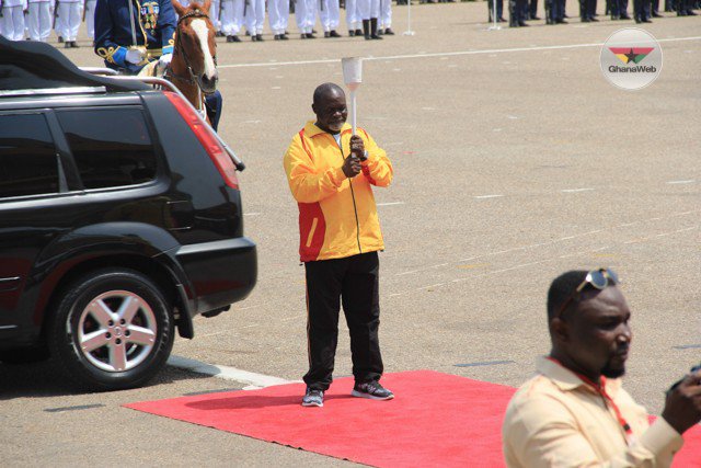 The President lighted the Ghana 60-year on torch which signified the beginning of the year long anniversary. The torch will travel across Ghana making stops at all 10 regional capitals in the course of the year. The torch was handed over to boxing legend "Professor Zumzum" Azuma Nelson who then sent it to the Accra Sports Stadium to hand it over to the Greater Accra Regional Minister.