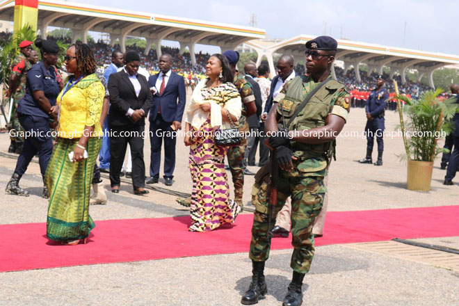 First Lady, Mrs Rebecca Akufo-Addo arriving at the parade grounds