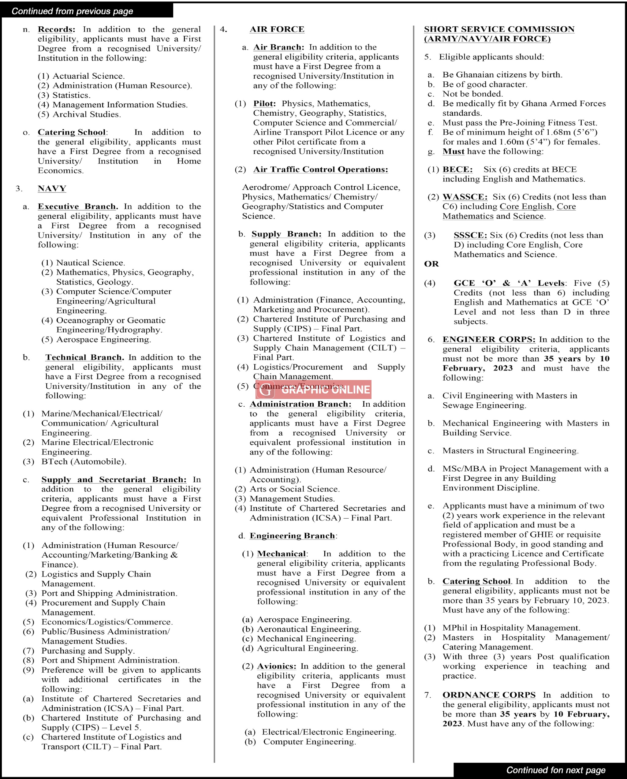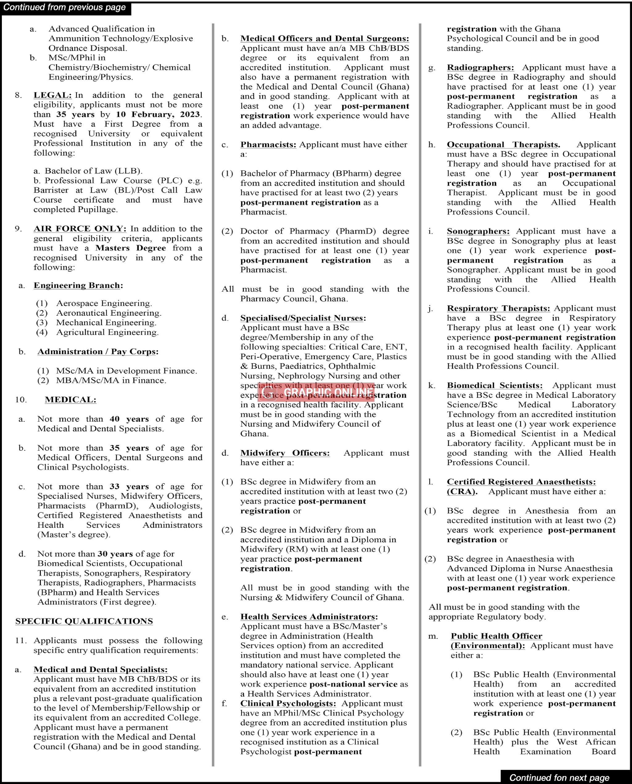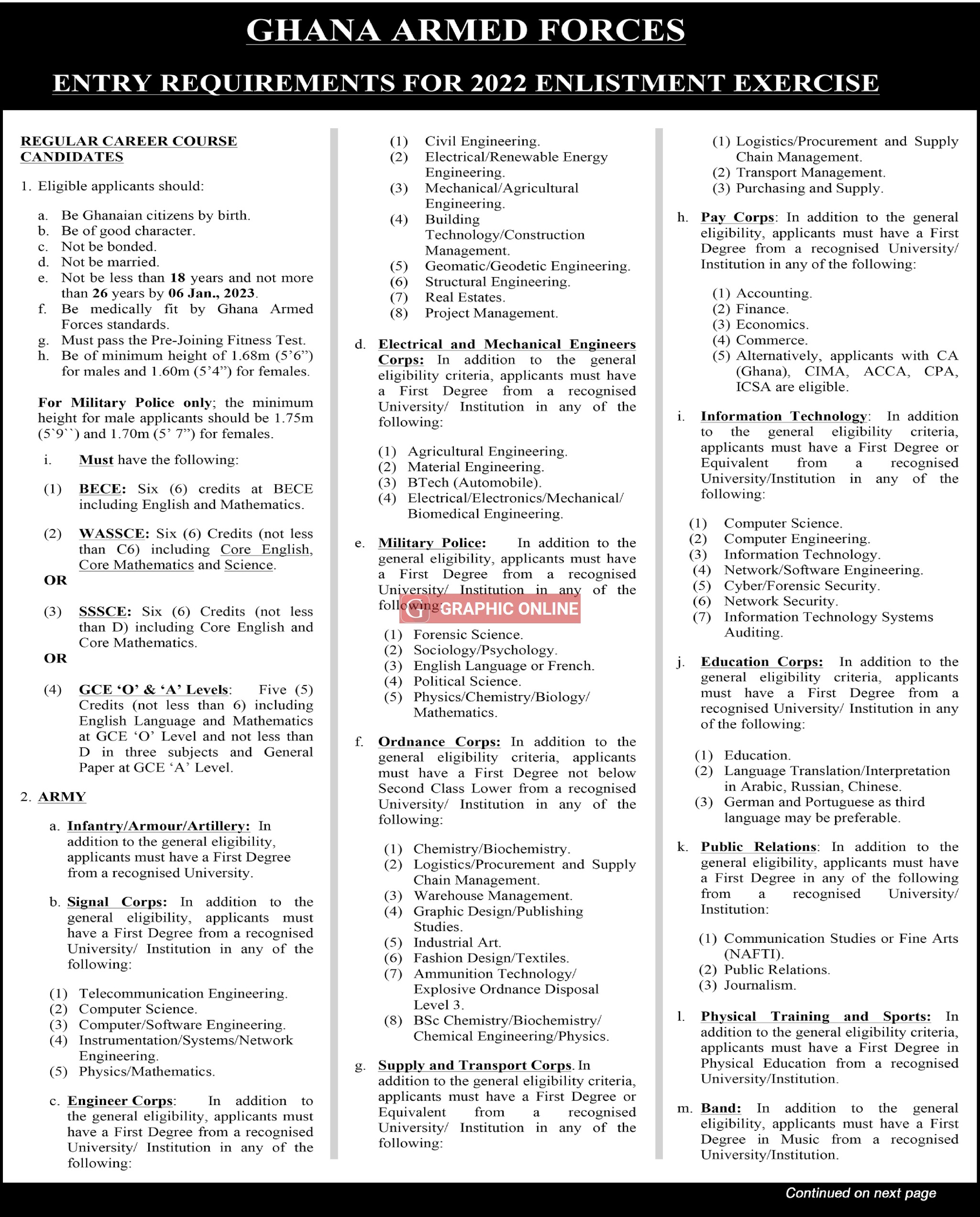 The Ghana Armed Forces (GAF) has commenced the 2022 enlistment process for Regular Career Course and Short Service Commission Officers.