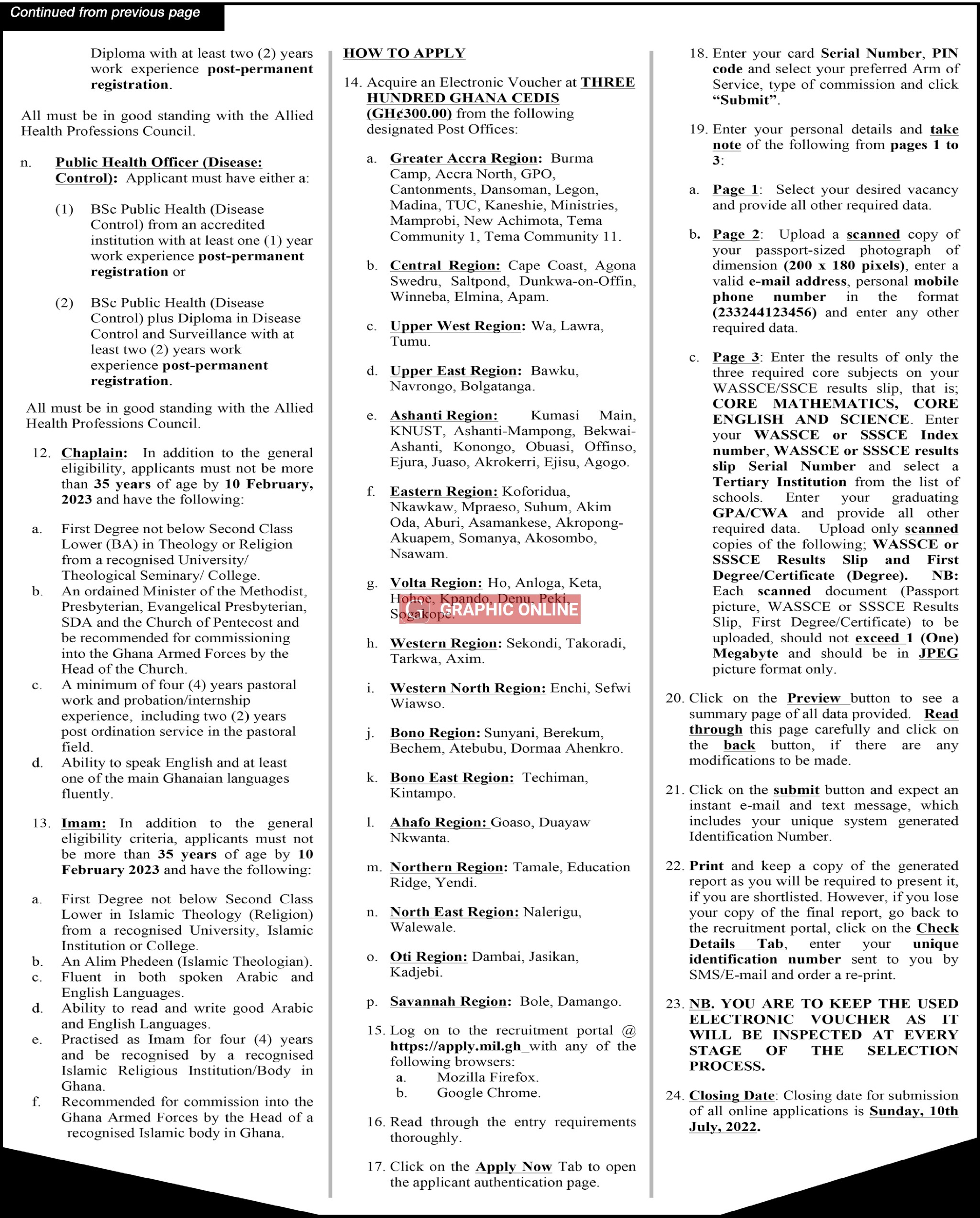 Details for enlistment have been advertised in the Monday, May 16, 2022 edition of the Daily Graphic.