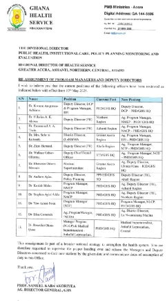 The changes affect senior staff within regional health directorates, national health programmes, and the GHS headquarters.