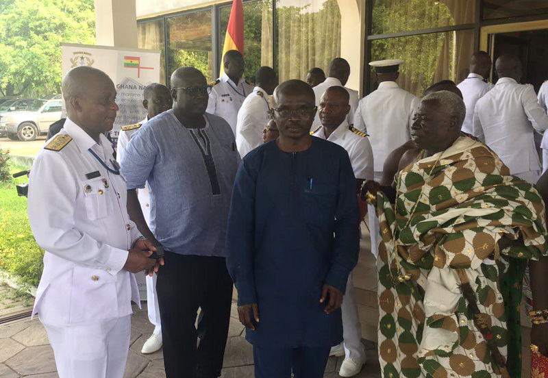 The Chief of Naval Staff, Rear Admiral Peter Kofi Faidoo, (left) interacting with the Ahantahene, Otumfuo Baidoo Bonso XV (in cloth) and Lawyer Kojo Kum Member of Parliament for Ahanta West (middle) at the opening ceremony.