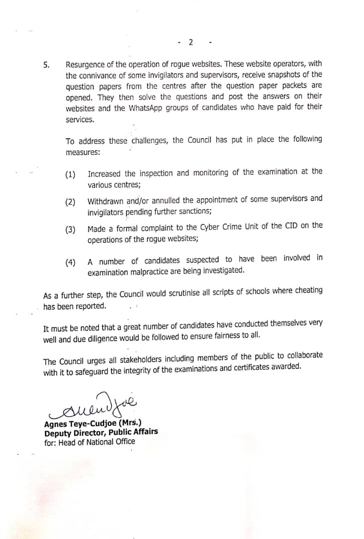 It also said it has made a formal complaint to the Cyber Crime Unit of the Criminal Investigations Departy (CID) of the Ghana Police on the operations of some "rogue websites", purportedly aiding in examination malpractices.