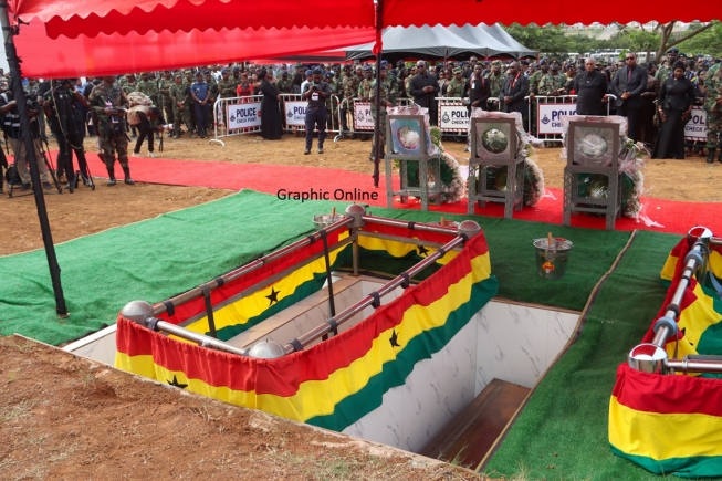 The bodies of the three military men were interred in the military section of the cemetery, while the civilian leaders found their eternal rest in the hallowed ground at the national memorial section at about 2:45 p.m, with the ceremony ending at exactly 3:11 p.m.