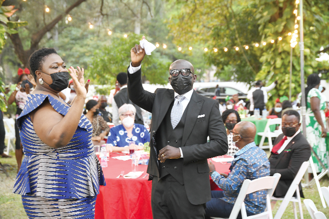 Mr Godfred Dame (right) Attorney General and Minister of Justice dancing to music. Picture: EBOW HANSON