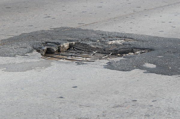On both sides of the country’s only concrete motorway, potholes, some of which have been patched with bitumen, have left the road in a dangerous state, especially at night when visibility on the stretch is poor.