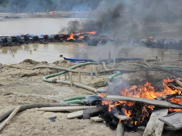 The team retrieved two tricycles, a motorcycle, and destroyed 25 chanfang machines, which were subsequently burned.
