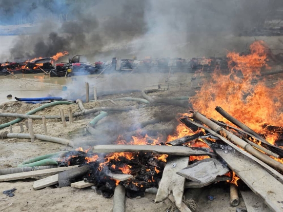 The task force also dealt with several makeshift structures erected along the course of the Ankobra River used as shelters by the illegal miners.