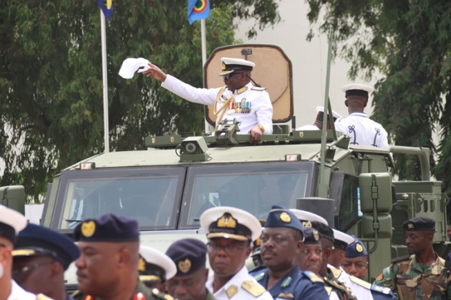 After taking the general salute and inspecting the parade, the outgoing CDS was showered with gifts from individuals and institutions in recognition of his contribution to the development of GAF and the nation.