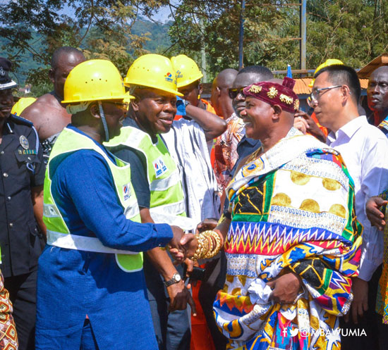 Accompanied by the Minister for Roads and Highways. Kwasi Amoako Atta and the traditional rulers of Oti Region, the Vice President, Dr Mahamudu Bawumia on Tuesday, November 19, cut sod at Jasikan for works to begin on the stretch of road which the Vice President said has a long and painful history of neglect under the erstwhile government.