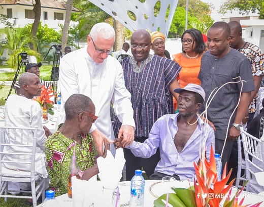 Father Campbell is especially proud of the Vice President’s decision to open his home to host and have lunch with a large body of cured lepers, drawn from the Ankaful, Ho and Weija leprosariums, to drive home his point that there is nothing to fear from interacting with cured lepers.