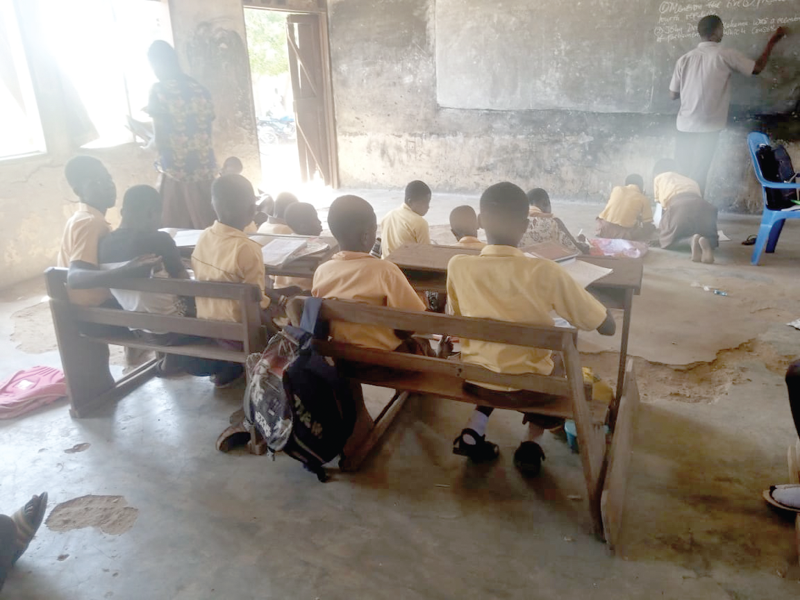 The condition of the classrooms is indeed an impediment to academic work as the school children have to lie with their faces to the ground to write exercises and do other academic work given to them by their teachers.