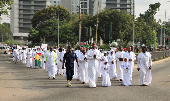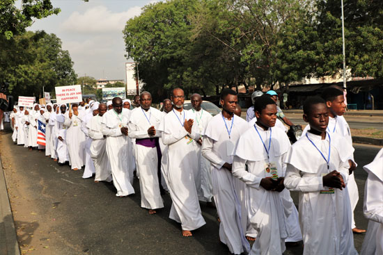 Adorned in unspotted white clothes, members carried placards some of which read “Peacemakers are children of God”, “Be a peace advocate”, “Let us live in peace, Ghana”, “God is the giver of peace”, “Ghana needs heavenly peace in all affairs”, “In peace there is joy and happiness”, “Give God your worries and He will give you peace” and “Peace, a tool for conflict resolution”.