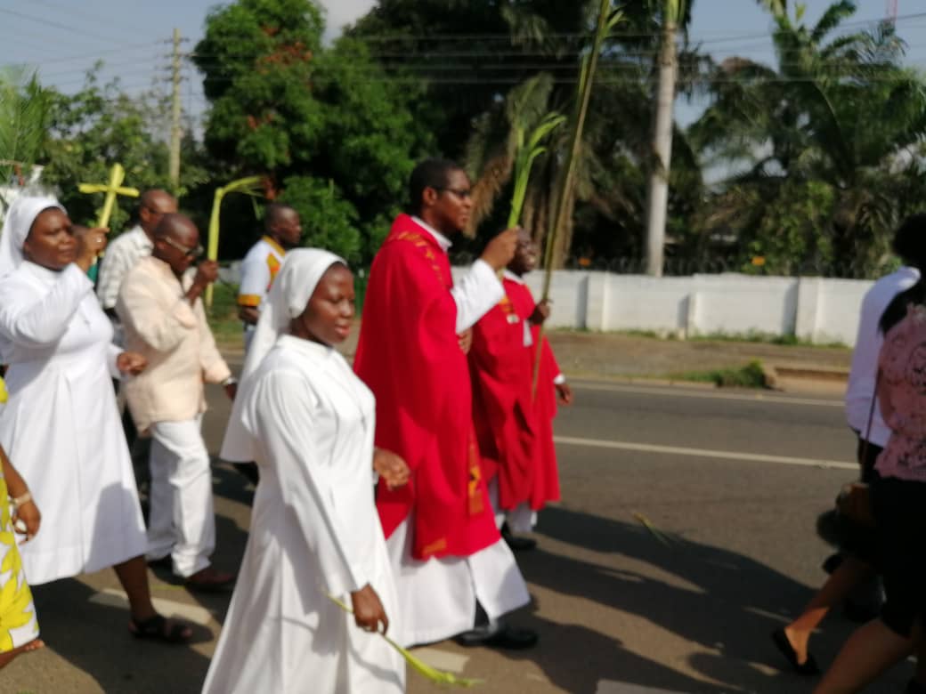 From the Mary Mother of Good Counsel Catholic Church, West Airport, Hadiza Nuhhu Billa Quansah reports that Very Rev Fr. David Arko Amissah and Very Rev Fr. John Louis led the Palm Sunday ceremony.