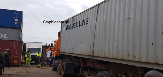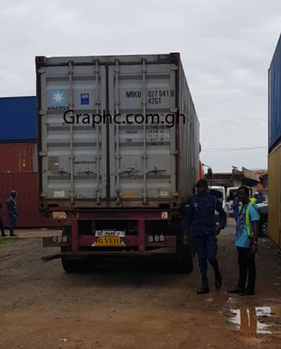 Officers from Customs, the Bureau of National Investigations (BNI) and Port Security provided protection for the container overnight when it was detained Thursday night Graphic Online has gathered.