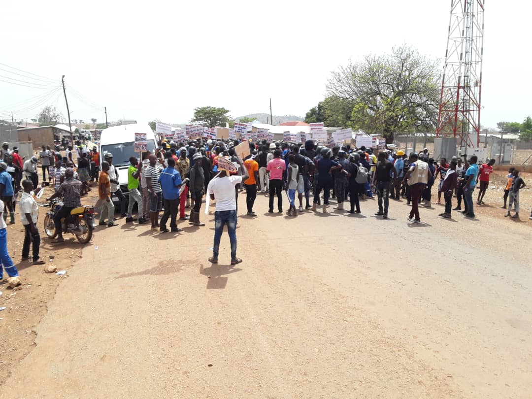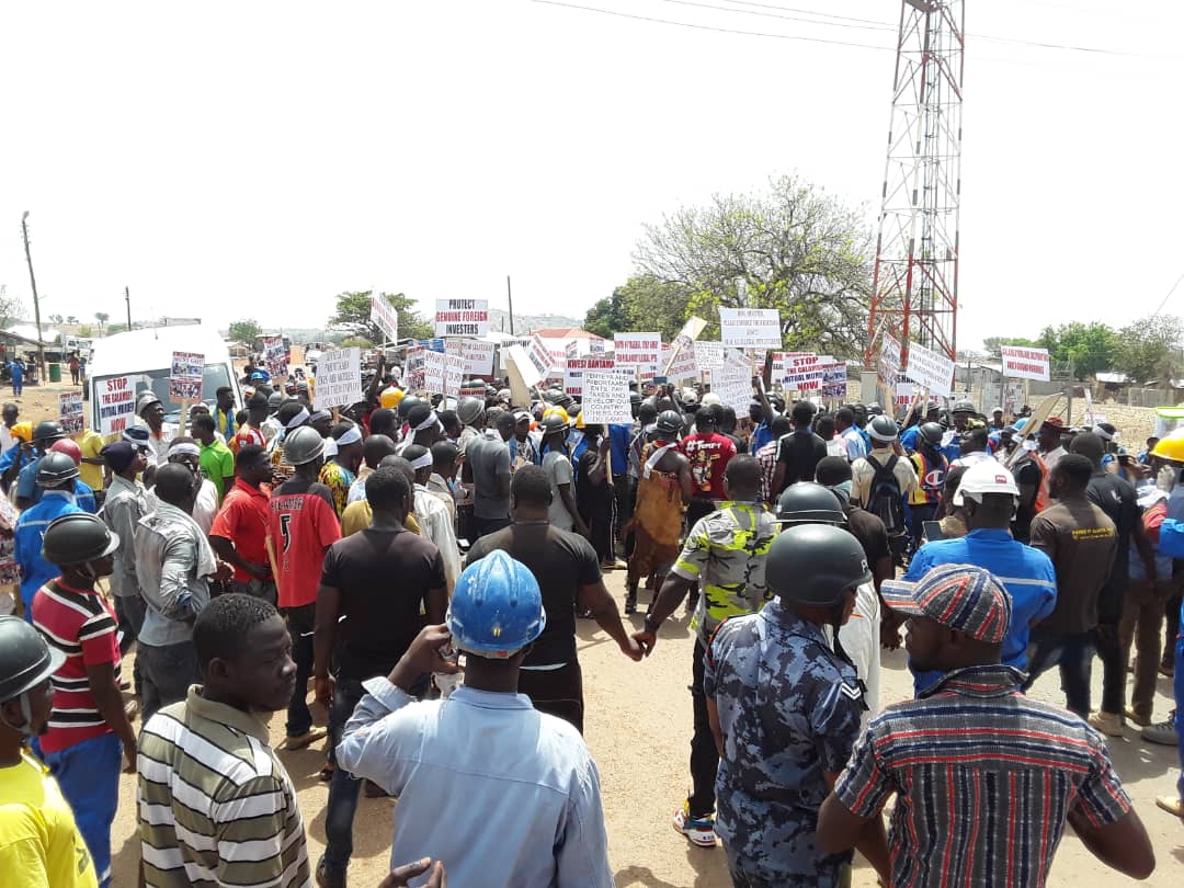 Hundreds of workers of the Shaanxi Mining Ghana Limited at Gbane on Wednesday took to the streets of Tongo in the Talensi District of the Upper East Region and called on the President and regulatory bodies in the mining sector not to revoke the licence of the company.