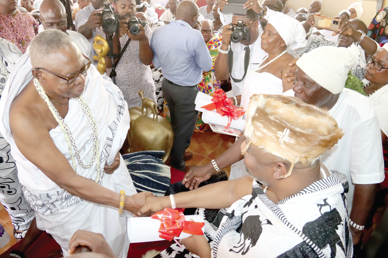 Mostly clad in white cloths the chiefs responded to appellations from youth groups, priestesses and the crowd who had gathered to witness the ceremony.