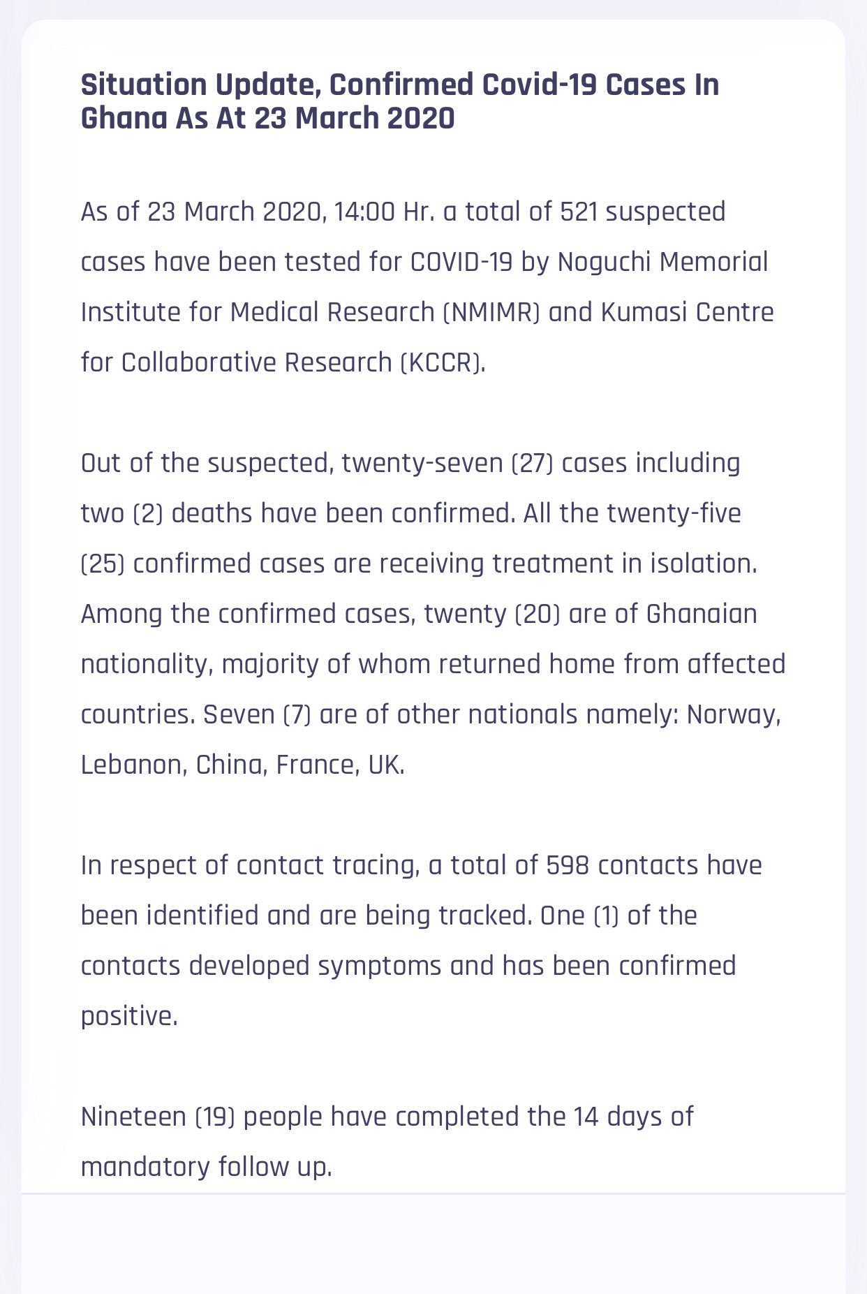 Situation update confirmed #covid19 cases in Ghana as at 23 March 2020. pic.twitter.com/9craOcPrX1