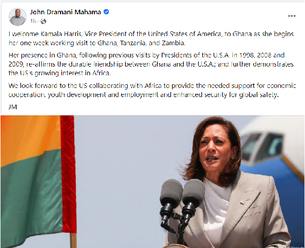 In a Facebook post to welcome Harris to Ghana on Monday, March 27, 2023, Mr. Mahama said the visit, which follows previous ones by US Presidents in the past, further demonstrates US’s growing interest in Africa.