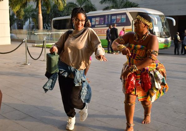 The group on Friday, December 27, 2019, was met with drumming and dancing by the Africana Dance Ensemble at the entrance of the hotel to officially welcome them home.