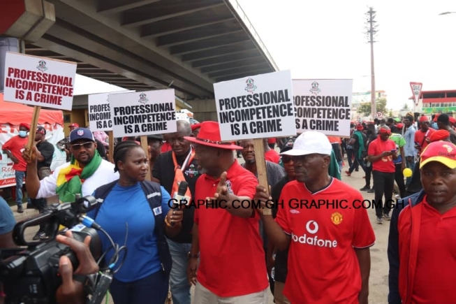 The protesters are marching from the Obra Spot through Adabraka, Ridge roundabout, the National Theatre traffic light, the high court complex traffic light, and the Atta Mills Street.