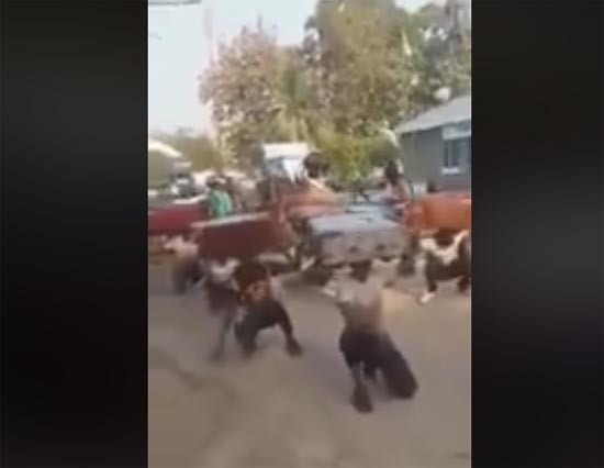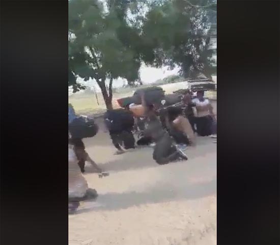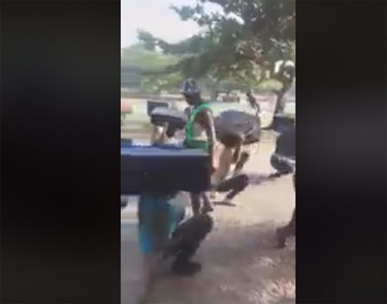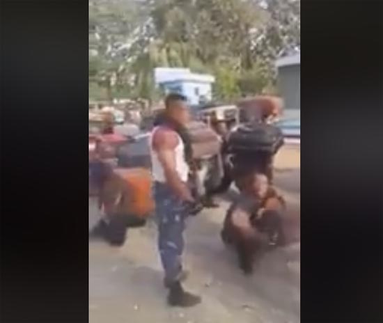 In a video [below] circulated on social media, some recruits are seen undergoing arrival formalities [drills] at the training school, where they are seen moving on a bended knee carrying their luggage.