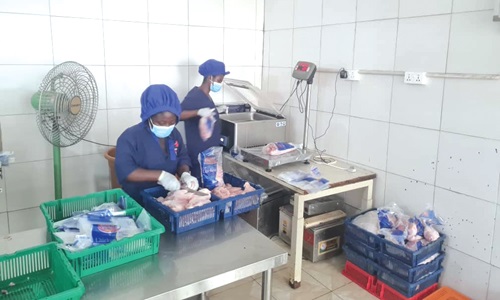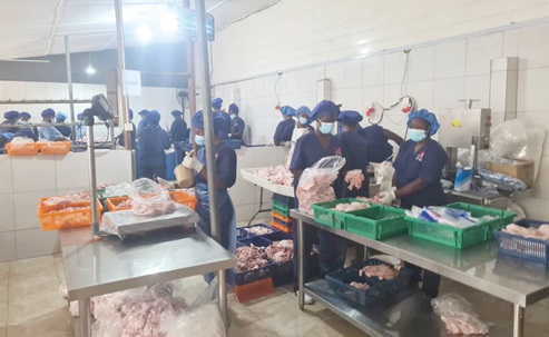The broilers are being processed into whole chicken and cut parts for packaging and marketing, having reached the maturity age of seven weeks, with an average live weight of between 2.9 and 3.0 kilos.