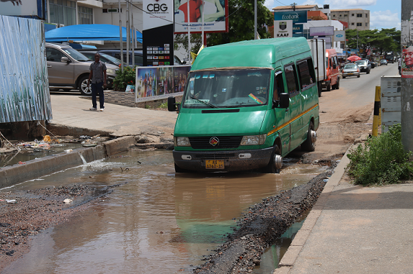On the Dr Busia Highway which stretches from Kaneshie through to Mallam, pockets of potholes dotted the road. Sections of the road that were patched had been washed away.