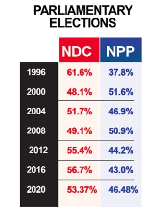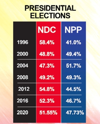 Over the past 32 years in the Fourth Republic the race for leadership has mainly been between two political parties — the National Democratic Congress (NDC) and the New Patriotic Party (NPP).