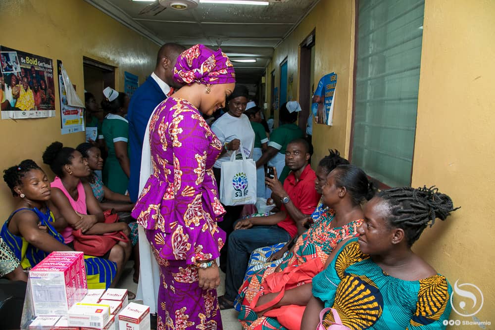 he was taken round the facility, where she interacted with women who were being seen by the obstetrician and gave out bags containing prenatal vitamins, blood supplements, baby care products and beverages.