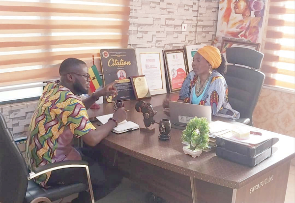 This reporter interacting with Alimatu Sagito, Executive Director of SWIDA Ghana