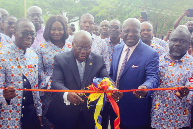 President Akufo-Addo cutting a tape to inaugurate the administration block for the School of Graduate Studies (right) at UCC