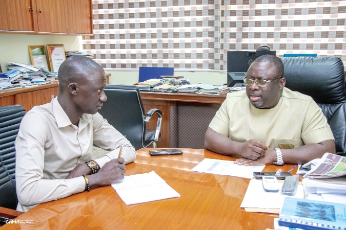 George Asiedu (right), National Coordinator of the GAMA-SWP, sharing a point with Daily Graphic’s Timothy Ngnenbe