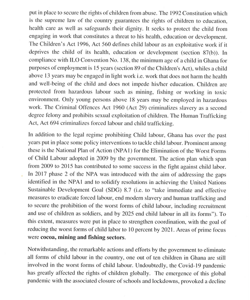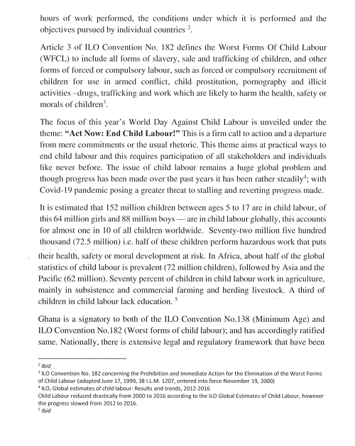 "There is the urgent need to prevent the occurrence of child labour, as it deprives affected children especially from poor households the equal opportunity at education for better future and to prevent intergenerational poverty. No matter the social background of children, none of them deserve to be left behind in child labour and its associated human rights abuse".