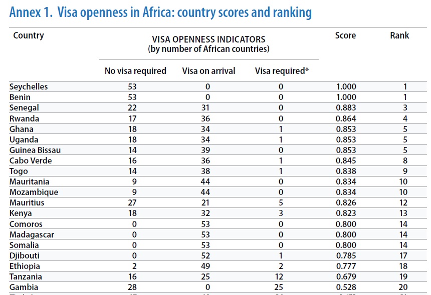 The Index shows that Seychelles and Benin remain the top two countries on visa openness in Africa, with their visa-free policy for all African visitors.