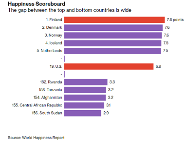 The data “offer the world’s governments and individuals the opportunity to rethink public policies as well as individual life choices, to raise happiness and well-being,” said Jeffrey Sachs, director of the Sustainable Development Solutions Network. “We are in an era of rising tensions and negative emotions and these findings point to underlying challenges that need to be addressed.”