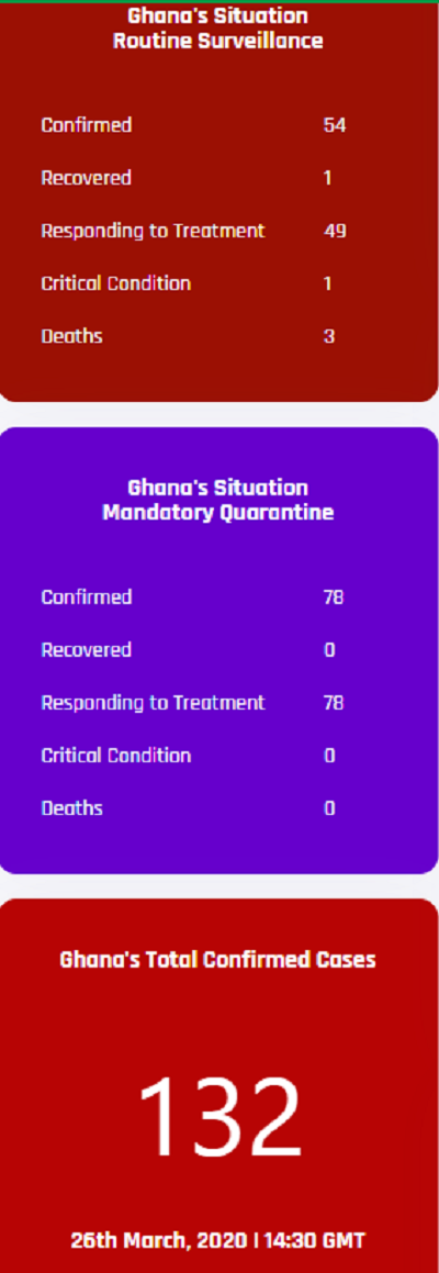 There have also been three deaths from the Coronavirus in Ghana since the second week of March when the first case was recorded.