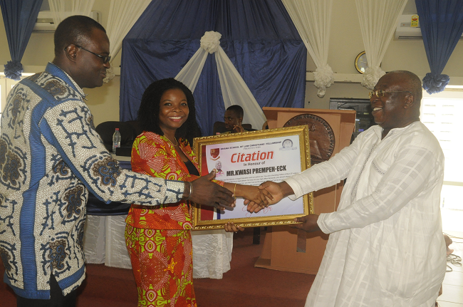 The President of the LCF, Mr Kwesi Prempeh, presented a newly instituted ‘Daniel prize’ to Mr Emmanuel Kyei. It was initiated by a patron of LCF, Mr Kimathi Kuenyehia, to encourage law students to be good Christians.