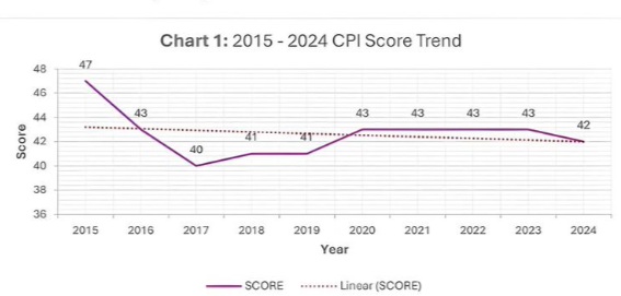Ghana’s anti-corruption efforts have suffered a setback, with the country’s score on the 2024 Corruption Perceptions Index (CPI) dropping for the first time in five years.