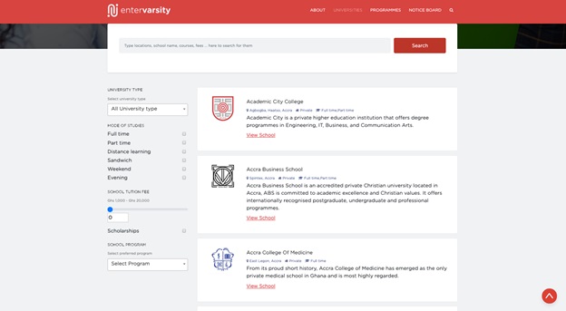 The search engine which is currently live at www.entervarsity.com hopes to reduce the hustle many Ghanaians and foreigners face in accessing information needed to make well-informed decisions on tertiary education.