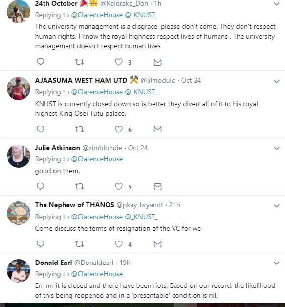 The reactions to the disclosure that KNUST has been included in their itinerary stems from the fact that the university has been closed down indefinitely following a violent demonstration by the students on October 22.