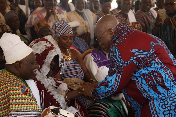 The Yagbonwura, in a speech read on his behalf, thanked the President and all others for the efforts and said although the Constitution barred chiefs from participating in active politics, he would give praise where it was due.