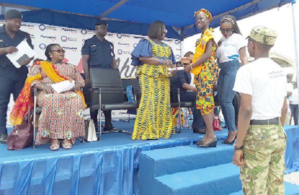 Madam Akosua Frema Osei-Opare receiving the petition from Ms Mary Asamoah (3rd right). With them are other dignitaries at the event