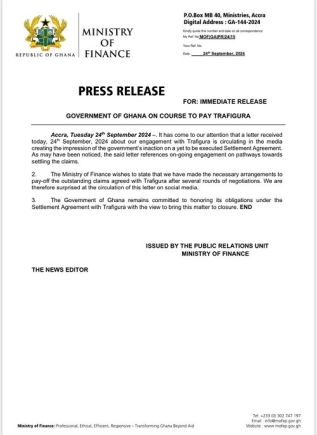 In response, the Ministry of Finance released a statement on September 24, confirming that the necessary steps had been taken to address the claims. "We have made the necessary arrangements to pay off the outstanding claims agreed with Trafigura after several rounds of negotiations," the statement read, reassuring the public that the government remains committed to honoring its obligations.